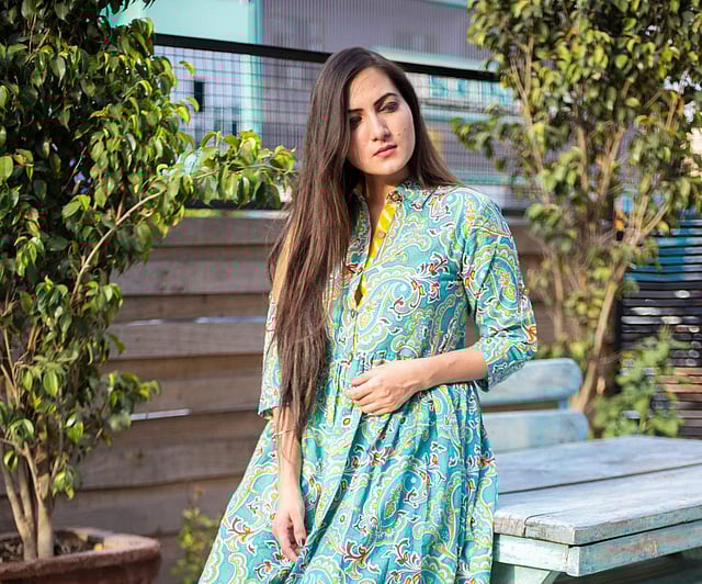 Look out for their silk capsule collection encompassing 25 designs and 10 print patterns, featuring a colour palette of powdered pink, sunshine yellow and orange among others. “We have designed silhouettes for women of all age. And most of the clothing comes with a pocket and are anti-transparent,” says Vrinda. Expect A-line, asymmetrical and straight cuts. Trending slim-fit cigarette pants that are slowly expected to replace the palazzos are among their latest additions.