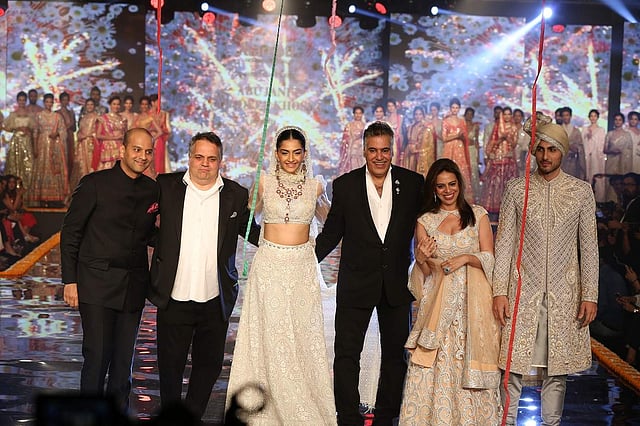When we arrived at the JW Marriott Hotel in New Delhi on a muggy Friday afternoon, the place was buzzing with energy. Not what you’d expect from a hotel that’s about a 45-minute drive from the city. But given that the star hotel pulled off what can only be described as ‘the wedding of the year’ later that evening, this is not at all surprising. Shaadi By Marriott, as the event had been aptly named, saw the hotel collaborating (or tying the knot, if you will) with couturiers Abu Jani and Sandeep Khosla for a fashion showcase that transformed the runway into the setting of some of the more important wedding rituals - sangeet, mehendi and the mahurat, among others. Naturally, the show was elaborate with 20 dancers, 54 models, 90 different outfits and a showstopper who is nothing short of a dream for most designers (we’re talking of course, of Sonam Kapoor). Sandeep Khosla, arriving at our interview after a quick rehearsal at the hotel’s ballroom, shares that the collection, with 90 different pieces showcases crafts ranging from their signature chikankari and zardozi to other fine embroidery techniques. “This time around, we experimented with a brand new embroidery technique with fine thread. The line is called Burano and features just two pieces,” says Sandeep. Excerpts from the interview: