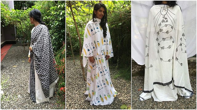 printing technique.While they bring a tropical, playful vibe to his numbers, it is the innovative use of handloom material which makes his collection edgy.“Right from launching my brand at Lakme Fashion Week, I have been sourcing fabrics from different parts of India. It is the key factor for any collection,” shares Jebin, who worked in close association with the artisan community in Kuthampully to bring out Dida. Launched earlier this month, his ensemble features cassocks and saris alongside skirts in umbrella cut and pleated variants listed among its silhouettes. Though he admits that he’s partial to the sari, Jebin’s line features unique ways to styling the same as a cape paired with cassocks. With a huge following from places including Delhi and Kolkata for his minimal yet eclectic pieces, the globetrotting designer is currently working out of Kochi. While his designs are limited to womenswear currently, Jebin hints at venturing into the realm of menswear soon.