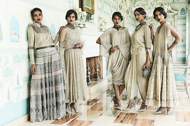 Inspired by the nomadic beauty of Indian tribes and motifs from Mughal armory-inspired art, the Autumn-Winter ‘17 collection comes in a palette of emerald, indigo and red along with black, cream and beige to mark the onset of fall. Embracing a multitude of techniques - including laser etching, zardozi and embroidery the apparel is made out of rich fabrics of silk, khadi, georgette and velvet. The collection celebrates the concept of ‘separates’, suited for the modern Indian lifestyle where drapes, crop tops or jackets can be paired with separates like jeans, tights or skirts. Look out for their Polka range with patterns made using Ajrakh block print, Kasuti collection with geometric patterns and Chikankari collection with resham embroidery on damask prints.