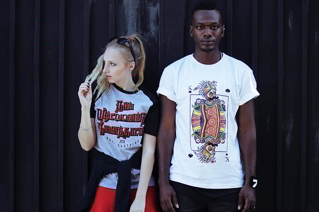 Russian and African American models sporting metallic bombers, tinted hairdos, flashy shades and a hint of ’90s fashion — and then you spot that T-shirt that says Naan Tamizhan endru solluda (Say that you're a tamilian). In an attempt to break barriers in fashion, Angi Clothing, Chennai’s local T-shirt label just put out a campaign promoting cross culture clothing. The campaign has models from Northeast India, the United States of America and Russia wearing T-shirts from Angi with messages like, “Straight outta Madras, Rowthiram Pazhagu, Madrasi Da and more!