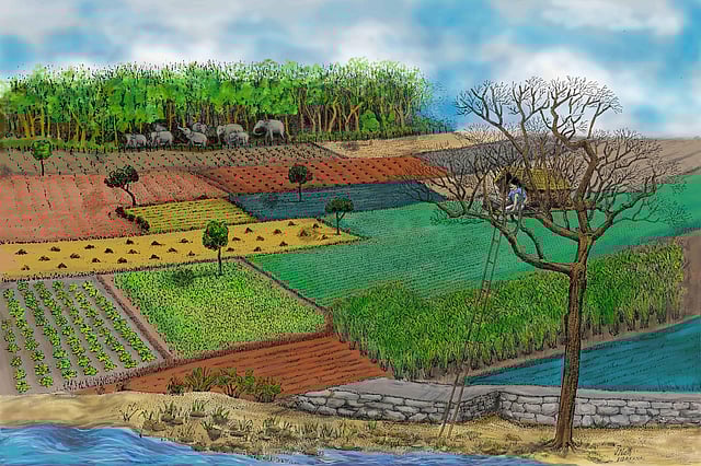 Everything from the fabric to colour palette is inspired from their farm. For instance, the blues were taken from the Kabini River that flows by, greens from the surrounding forest cover, greys from elephants, yellows from the tigers, red from their main crop ragi and black from the soil in which cotton grows. This forms the entire backdrop of the colour scheme. The design story behind the checks and block patterns in the garments is influenced by farms that are usually divided into squares and rectangles for cultivation of different crops and seasons. You can notice these patterns in the body, blouse, pallu or the border of the saris. The silhouettes are mostly in the form of saris and a few garments can either be worn as dresses separately, as kurtas or teamed up with palazzos. “Lighter weaves were used for the saris, to give a finer and softer texture on the skin, while thicker weaves were used for the garments. “We wanted the saris to be light and easily maintainable without having to starch, and be draped like crepe or georgette,” says the 47-year-old.