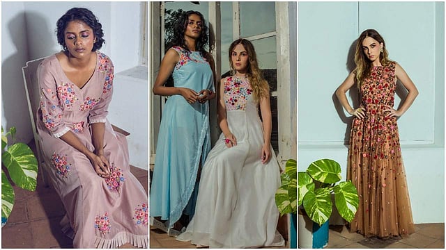 Despite prioritising Indian elements within the collection such as the use of chanderi fabrics and aari handiworks, this Kochiite has ensured her commitment to a fusion-specific wardrobe through Spanish influences. Apart from frills, gathers, layers and folds reminiscent of Frida Kahlo’s clothes, this 20-something has cleverly integrated a selection of tassels and fringes to the designs. “I have tried to ensure that the ensemble includes all kind of looks ranging from casuals to bridal gowns,” shares Diya, whose work highlights lighter shades such as teal, baby blue, and lime green. Expect a range of tunics, and dresses crafted in fine silks and linen when exploring this line.