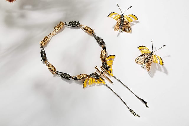 Those with a penchant for quirky accessories will surely adore the handcrafted, limited edition pieces from this Mumbai-based label.“We will be exhibiting our Line Imago at Kochi along with a few of our bridal pieces,” shares Kaabia Grewal, the director of the brand, adding that their 22 kit gold pieces are plated with gunmetal and comes embellished with Swarovski crystals like the Maison Martin Margiela crystalactite and Jean Paul Gaultier’s Kaput crystal.