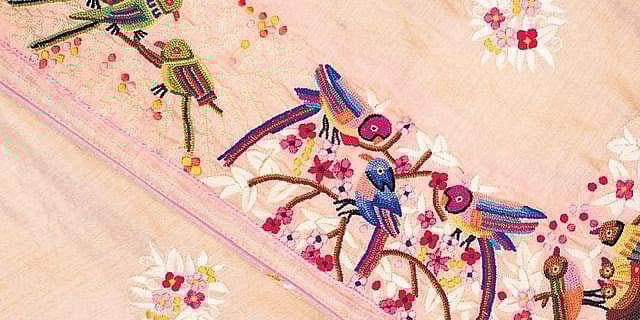 The French aristocracy patronised the intricate cross-stitch technique of petit point, which used the finest strands of mulberry silk to make art work as well as handbags and pill-box covers. It has 400 stitches per square inch and there is no limitation on colours. Prastuti uses them in saris as well as other garments. It has more colours in comparison to Parsi embroidery, which is why it is more intricate and motifs are more detailed and so seamless that very often, it is mistaken for a painting.