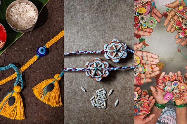 Seed Rakhi is an initiative by Edha which is a self-help group of the Gach Green Hands Social Welfare. The Rakhi’s are crafted with earthy hues, seeds and are complete with emotions. One would find Rakhis made of jaggery leaves, terracotta, and clay.