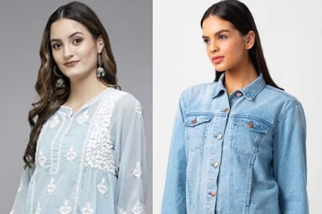 Today, fashion is evolving at a rapid pace. We have seen denim jackets styled in different ways, but the unique way of styling denim jackets with skirts is gaining popularity. It can be worn during any festive season, including Navratri. A skirt teamed with a jacket will give an Indo-Western vibe.