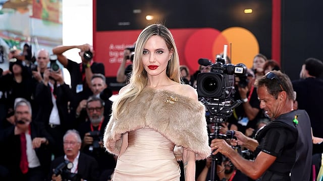 For another look at the festival, Jolie was seen in a stylish brown Saint Laurent dress featuring geometric stitching around the bodice. She completed the ensemble with side-parted waves and minimal makeup, exuding an effortless and alluring vibe.