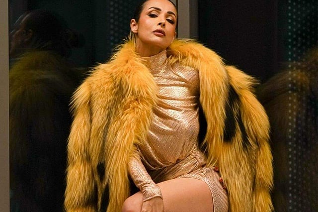 The pleated bottom of the ensemble featured a flare that went well with her style. Alongside, Malaika also picked a fur coat with the outfit. For makeup, the actress applied kohl-rimmed eyes, shimmery eyelids, contoured cheeks and a brown shade on her lips. Her hair was neatly tied in a bun. A pair of nude strappy heels rounded off her avatar!
