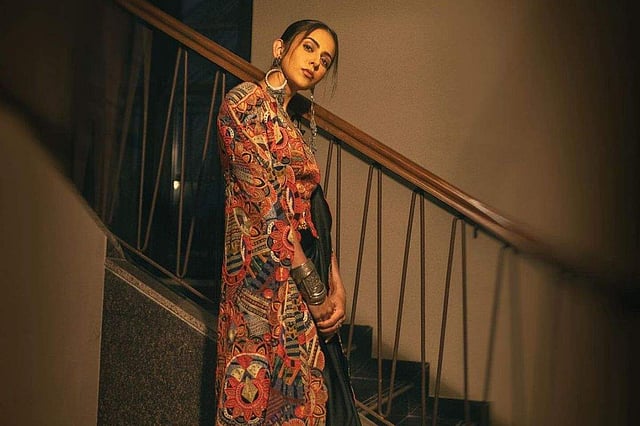 Styled by celebrity fashion maestro Anshika Verma, Rakul accessorised her look with statement gold drop earrings, silver stacked bangles, a black embellished potli bag, and traditional juttis, completing the ensemble with finesse.