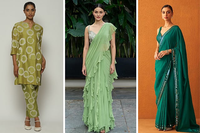 Green is no longer just the colour of envy; it's the verdant hue taking the fashion world by storm. From emerald to olive, this season's trendsetters are embracing all shades of green, symbolising not just environmental consciousness but also a fresh start and vibrant energy. Leading Indian designers are weaving this verdant palette into their collections, offering a tapestry of styles that cater to every woman's unique sense of self.