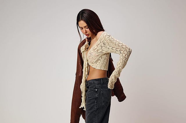 Just recently, Sonam dropped a series of photos that screamed ‘street style queen.’ Think comfy yet chic – a flowy, off-white crocheted blouse with delicate lace details took centre stage. The dramatic sleeves and playful knotted front added a touch of whimsy, perfectly balanced by loose-fitting, high-waisted charcoal jeans. A brown leather jacket slung nonchalantly over her shoulder upped the cool factor.