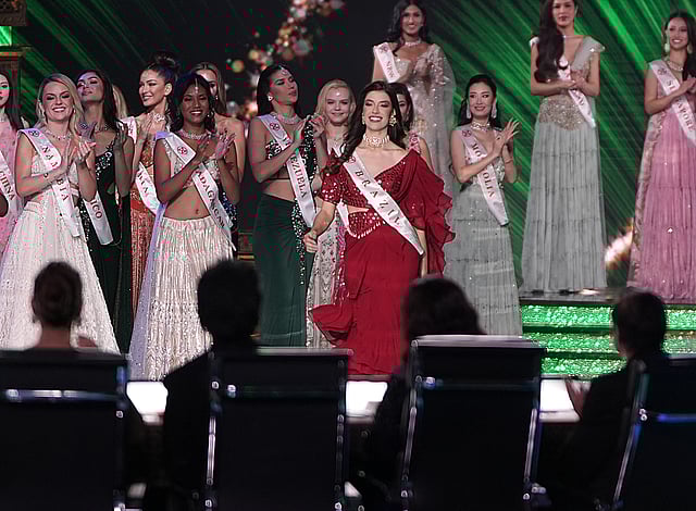The contestants from Africa dressed in embroidered lehengas and Anarkali sets inspired from Lucknowi Chikankari and kardana beads while the contestants from Americas and Caribbean reflected Bollywood bling complete with Indian jewellery made of ruby, sapphire, and emerald.