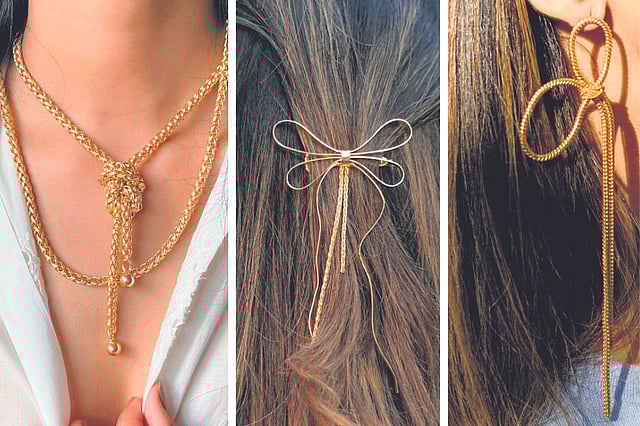 The collection features Bow Studs, which is a delightful fusion of elegance and playfulness; Knot Earrings that can add a subtle yet stylish accent to any outfit, and is perfect for both casual and formal occasions; and the charming Bow Ring. The Bow Brooch exudes understated charm whether worn on a lapel, scarf, or blouse, and can add a touch of classic beauty to any ensemble. But the statement piece is the Bowtie Choker that can elevate your neckline and is a chic and stylish accessory.