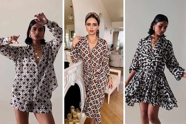 Nouria's bold and fun geometric printed looks are trending this season. The brand offers a stunning array of geometrically printed outfits in various silhouettes, from co-ord sets to dresses, all designed to cater to every size and shape.