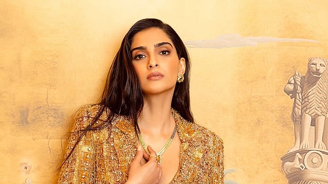 Staying in harmony with the metallic tones of her outfit, Sonam chose a bronzed eyeshadow to make her eyes stand out, with mascara-laden lashes adding a touch of drama. A soft pink lipstick, sculpted brows, and perfectly bronzed, highlighted cheeks gave her that signature radiant glow, while her long, glossy hair left flowing added a touch of effortless glamour to the look.