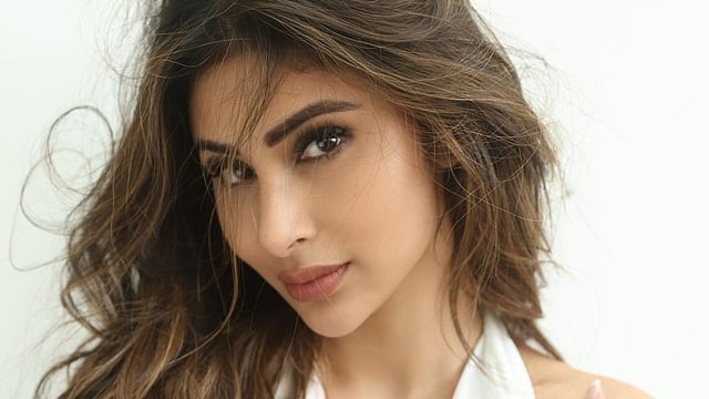 Her captivating backless dress features a daringly low, cowl neckline and exudes sophistication through its understated allure. Mouni's bold fashion choice is softened by her flawless matte makeup, rosy lips, and expertly contoured cheeks. With her hair flowing freely, she completes a look that’s simply enchanting.