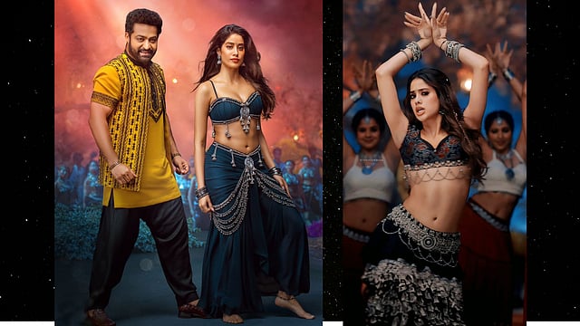 Nitya Bajaj’s latest collection for Devara is nothing short of a style revolution. As the film—a gripping saga featuring N T Rama Rao Jr, Janhvi Kapoor, and Saif Ali Khan—unfolds against a stunning coastal backdrop, Janhvi's wardrobe is stealing the spotlight. The song, which has already racked up over 10 million views, showcases Janhvi in a dazzling array of custom-designed outfits that pay homage to the ancient Ajrakh craft while infusing it with a contemporary edge.
