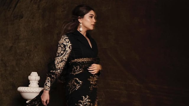 Bollywood actor Sharvari made a memorable appearance at the 25th-anniversary celebration of the iconic fashion label Sabyasachi. The Maharaj actress turned heads in a striking black sari by Sabyasachi, elevated by a custom upcycled denim jacket featuring archival embroidery.