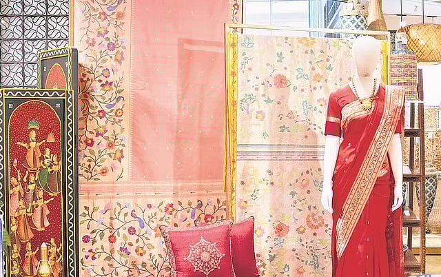 After their inaugural chapter Banarasi weaves, Swadesh showcased the regal splendour of Maharashtra’s iconic drape — the Paithani. Revival Stories, a limited edition collection of Paithani, is presented after meticulous research and masterful craftsmanship.