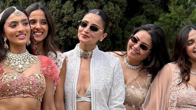 Alia Bhatt makes sure that all her looks, especially if she's attending a wedding, is always on point. While her last day's wedding guest attire where she paired a multicoloured lehenga with a bandanna and shades added a lot of freshness and drama, her new look drop from her BFF Tanya Saha Gupta's Spain wedding, is an absolute fresh take on occasionwear...it is tailored, tonal, and totally Alia!