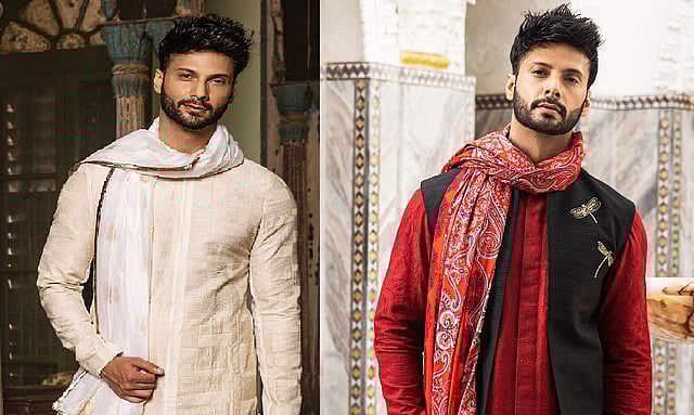 Our Autumn-Winter festive collection for 2021 is Geometry In Threads. We have used geometric motifs and surface ornamentation with monotone colours. The geometric pattern is structured well and is methodically arranged. Intricate details have been added to the outfits. Pieces that define the collection include jodhpuri coats, blazers, bandhgalas, waistcoats, Nehru jackets and kurtas in luxurious fabrics inspired by the heritage crafts of India. The collection is inspired by a compilation of abstract lines, abstract grids, horizontal lines and geometric blocks in vibrant colour palettes.