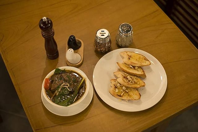 I’m at The Soup Shop, near Paul’s Hospital on Kaloor-Kathrikadavu Road, to try the new specials from their revamped menu. Their Taiwanese beef noodle variant, with its melt-in-your-mouth stewed tenderloin cuts, crisp bok choy, and rice noodles glistening in a flavourful meat consommé, sets a high benchmark.