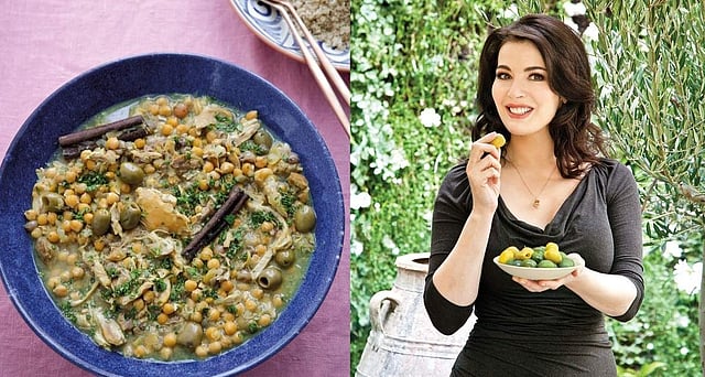 "My chook-from-the-souk is a lightly fragranced golden stew that gains more succulence from having the bones of the chicken thighs in as well. The skin gives flavour, too, and both skin and bones are removed on serving and the tender meat shredded. I can't prevent your making this with skinless thigh fillets, but I can tell you it won't be as good as if you use the chicken on the bone," Nigella writes on her website.