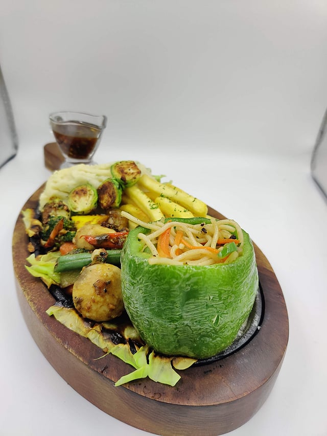 Sample Paneer Tikka Sizzler, which gives the humble paneer tikka a sizzling twist. Some more interesting options include Chuza-Wuza Sizzler, French Connection, Fungi & Fro, Soy-Woy, Sawadee ka Chicken and many more.