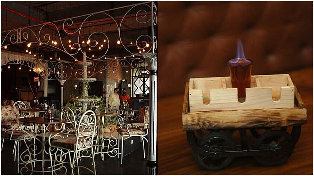 Sprawled across an area of 7,000 square feet, Sab Ka essentially marries luxury dining with the themed-pubbing experience, which brings forth certain crucial innovations vis-a-vis design and menu. The wrought iron chairs, the faux three-tiered fountain, colonial hanging lamps, country-style round-back chairs, a vintage gramophone do away with the usual industrial-forward feel found in most after-dark spaces. The gastropub is also more intimate and adaptable since it doesn’t push a particular aesthetic memo; urban brunchers can choose a sunny, glass-walled seating area, while late-night diners can go for the plush, velvet-and-wood-chambers to enjoy their fireball shots.