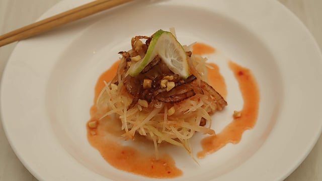 We started our trail with a sweet and spicy Papaya Salad. The honey chilli dressing along with siracha sauce coated raw papaya spelt out a well-balanced recipe. The Daab Chingri Cheese Risotto kicked off the real fusion game with a luxurious Daab Chingri that comes with a creamy Italian risotto. While the plating is more Bengali, it’s more Italian in palate owing to the creamy texture of the rice and mellowed-down mustard flavour. It’s definitely a must-have and we washed it down with it a sweet and refreshing Cactus Mojito.