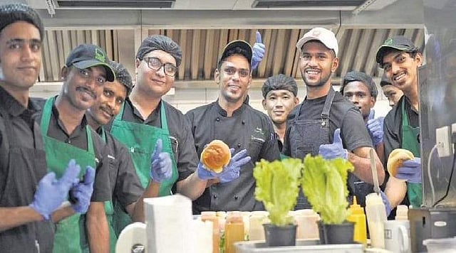 As I entered south India’s biggest burger joint — as claimed by its co-founders — the first thing I spotted was a big tree growing inside. The elegant interiors, painted with pastel colours and embellished by lush plants gives a very earthy vibe. As I sat near the counter waiting for chef Anas, one of the co-founders and the man behind the flavours of Beyond Burg Inc, I could smell freshly-ground coffee beans