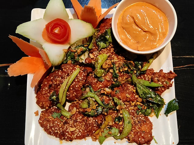 The Sasli Chicken Kebab was creamy, mildly spiced, extremely juicy and smoked to perfection, making it a must-try. Served alongside smoked bell peppers and a marinated onion salad, the condiments elevated the subtle spice profile of the kebabs. “We wanted to offer a full-fledged premium pub experience for folks around East Hyderabad. We have ensured quality service and maintenance, and the response from our customers has been great,” says Varaprasad Meka, managing director of SVM Group.