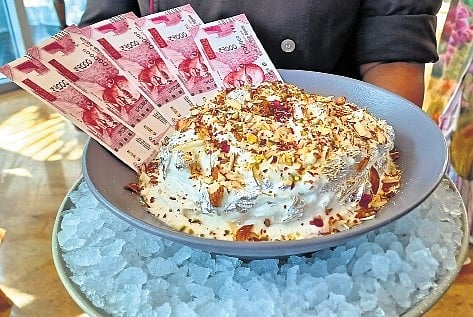 But in terms of aesthetic, the Daulat ki Chaat—pure creamy indulgence garnished with pistachios, rose petals, tutti-frutis and silver warqs and flanked by several `2,000 notes—won hands down.