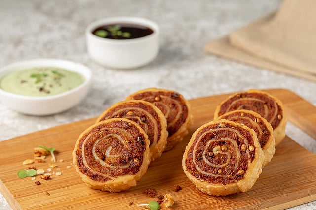 A must-try is the chef’s signature Chatpata Aloo Bhakarwadi. The Gujarati pinwheel-shaped sweet and spicy snack is given a twist here with a spicy potato filling, “I call it my samosa with a twist,” the chef says jokingly.