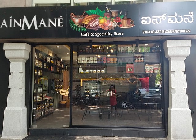 The original Ainmane Cafe and Specialty Store is located on a winding Madikeri road surrounded by shops selling everything from homemade chocolates to Coorg spices and a host of other products that are geared towards tourists. Their newest branch, outside of the holiday destination, is housed in a corner on one of Indira Nagar’s quiet lanes lined with trees and greenery on both sides. You’d be forgiven if, for a few seconds, you forget you’re still in the city and feel like you’re transported to Coorg. We visited on a cloudy, slightly wet day, and could hardly tell the difference!