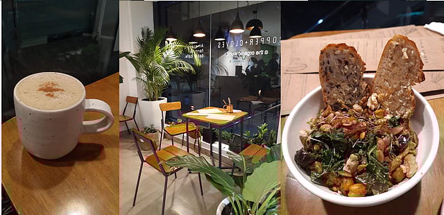 HOUSED INSIDE THE Organic World, a grocery store on 12th Main Indiranagar, the Copper + Cloves cafe is a farm-to-table cafe that specialises in plant-based dishes made with organic ingredients. A small space in a corner of the store, the cafe is easy to miss. But it’s the food that really made an impression on our visit there. The rich flavours and hearty recipes featured on the menu will bust any preconceived notions you have about vegan and ‘healthy’ food.