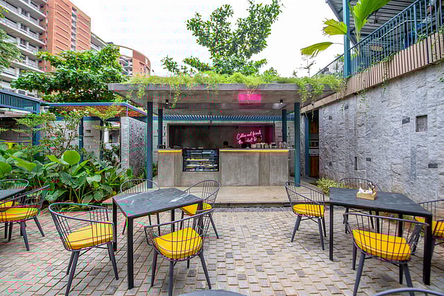 After a week of chaos, meetings and endless calls, we felt at ease hearing the leaves gently sway to the breeze, the sound of water flowing and birds chirping; while we chose to munch on spoonfuls of blueberry cheesecake that effortlessly melted in our mouths. And no, we did not escape the urban jungle or land in the outskirts of the city. In fact, we were seated in a new café, in south Bengaluru, that has all the earthy elements one could ask for in a space like this.