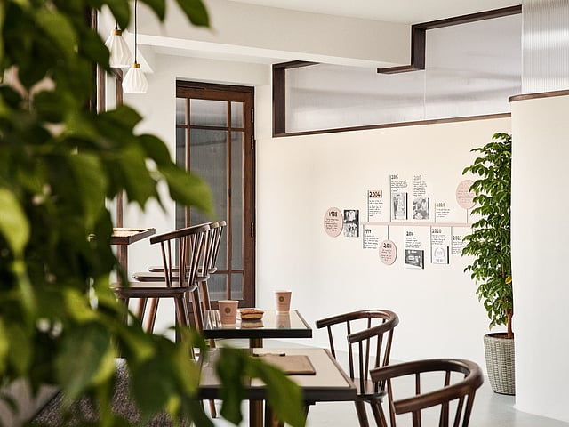 Imagine our excitement when we learned that this celebrated patisserie has now opened its doors in Bengaluru. Nestled in the bustling locality of Indiranagar, the new 620 sq ft flagship space is a minimalist’s dream. The exterior is wrapped in understated greys, leading into an all-white interior that feels serene. Hanging plants and artistic wall plates add a touch of whimsy, while the open bar design and varied seating arrangements, including cosy community tables, make it an ideal spot for bonding over something sweet.
