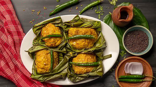It didn’t take us much convincing to let the team at the venue decide our menu for the day and we began this exquisite culinary journey with the Channa Matar (khova peas) Shrutir Chop, the Calcutta Prawn Cutlet and a Machher (fish) Chop. Three chops/cutlets, three delicious variants — what’s not to like? We dunked them in oodles of kasundi and we were ready for more treats. Of course, this while sipping on some refreshing Aampora Sharbat (made from roasted raw mango pulp).