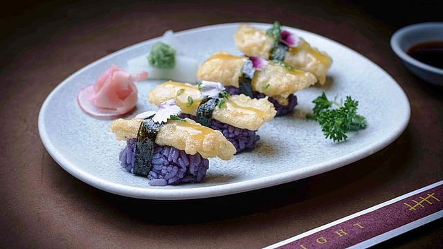 The tatakis come next and we are shameless fans of all three variants available — Nori Crusted Tuna Tataki, Salmon Tataki and a Salmon Tartare. We also suggest you try their ceviche variants and we highly recommend the Young Coconut Ceviche and the Pineapple Heart Ceviche. For non-veg lovers, blindly go with the hamachi variant — it’s one of the best in town!