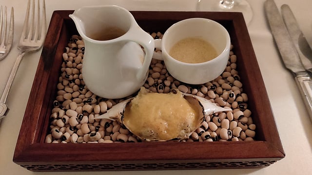 We were then served the Baked Negombo Crab Thermidor and Calamansi Hollandaise, along with Crab and Lemongrass Espresso. The crab thermidor was a mix of buttery and meaty flavours and it was spot-on. Neither of the flavours was overpowering and that’s why we absolutely loved it. The espresso complemented the dish as well.