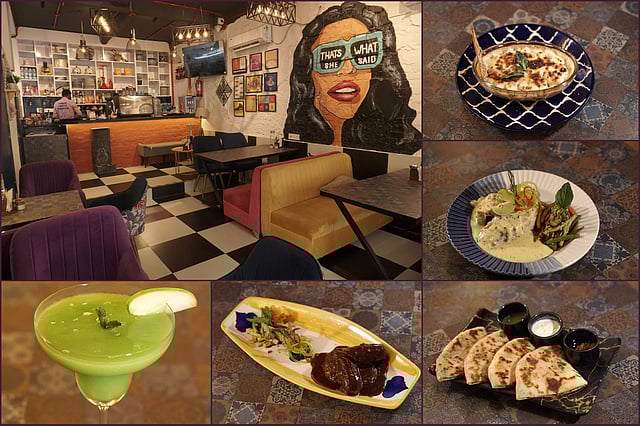 As we visited this swanky outlet on one of these afternoons, the first thing that caught our eye was the perfectly channelised multi-hued interiors that bring together vibrant roadside graffiti and catchphrases, with modern, minimalist furniture. The funky, up-beat music kept our spirits high by breaking the monotony of smooth, jazzy tunes. Three mocktails, each with its unique hue and flavour palette quickly arrived on our tables to satiate our summer cravings. While the Green Apple Frozen Margarita was on the sweeter side, with a syrupy, green apple base, the Rosemary Mint seemed like a perfect summer cooler. Spicy Guava however, was the show stealer with its zingy, pungent base that also acts as a palette cleanser in between meals.