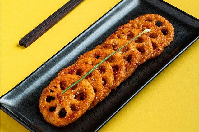 Start your feast with the iconic and flavourful Peking duck soup, and then move on to the Spicy seafood dumpling, the Three style mushroom dumpling, and the Sweet and spicy lotus stem for starters, each promising a harmonious blend of textures and flavours.