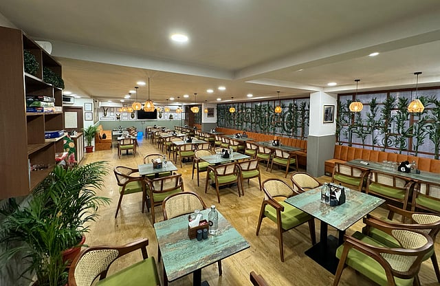 The moment we entered Old Town Road Café & Kitchen, it transported us back to our childhood. What struck us instantly was the upside-down chessboard hanging from the ceiling, welcoming us at the entrance. A flight of stairs up, the café exuded warmth and a vibrant ambience with lots of green elements lending a charm. Owned by Rohit Bhoot, Gautam Bajoria, and Vedika Sureka Agarwal, the newest spot in the town got a big thumbs up from us for its minimalist and cheerful ambience.
