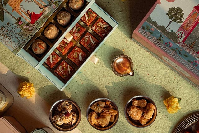 The festive signature hampers (box of 24 + 3 tins) include Dry Fruit Pinni Laddoo and Gajar Khoya Barfi along with Kali Mirch Tikona Matthri, a black pepper studded wheat snack, Gur Saunf Shakkar Para, traditional jaggery and fennel seed nuggets and Amaranth Charoli Cranberry Cluster, which have popped amaranth charoli and cranberry clusters.