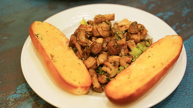 We started with Sauteed Mushrooms with garlic bread. The umami flavour that the juicy mushrooms brought to our palate was unforgettable, and we wiped the plate clean in no time as we scooped a generous amount, placed it on the hot and freshly baked garlic bread, and bit into them whole-heartedly. Side by side, we kept sipping Nutella Capuccino. The goodness of chocolatey Nutella with the slight bitterness of coffee paired very well, and the fresh cream foam on top balanced the two individualistic flavours of the drink.