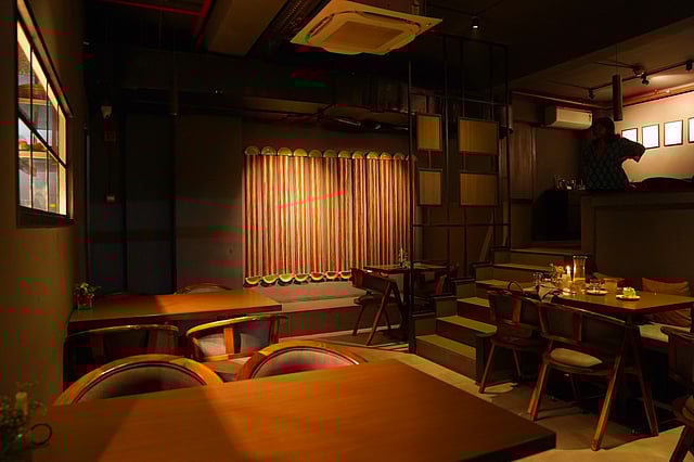 The room sets the tone immediately. It is compact, dressed in black, and lit with care. Nothing feels loud or overdone. Instead, the focus stays where it should, on the food and the conversation around it. It is the sort of space that works equally well for a long catch-up or a quiet dinner.