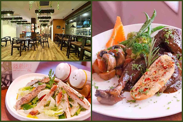 95 Degree Café and Bakery’s bill of fare offers endless Continental and Oriental options to indulge in as per one’s own choice, and we chose to feel comfortable with a tall glass of lemongrass cooler first. Unlike most other places, the coolers here are made organically hence doing away with artificial sweeteners and syrups. Our savoury choices were brief and simple, with their melt-in-mouth Chicken Cheese Croquettes, Nasi Goreng and Dry Chilli Chicken. We must say, the portions are to die for and more than enough to be shared between two. We particularly grew fond of the perfectly cooked Croquettes.