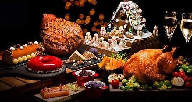 The lunch buffet includes Italian and Japanese cuisines and traditional desserts such as Dundee Cake, Plum Pudding and more.